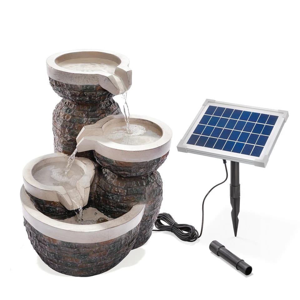 Fontaine solaire cascade de bols en pierre “AquaBowl” — une oasis de sérénité dans votre jardin