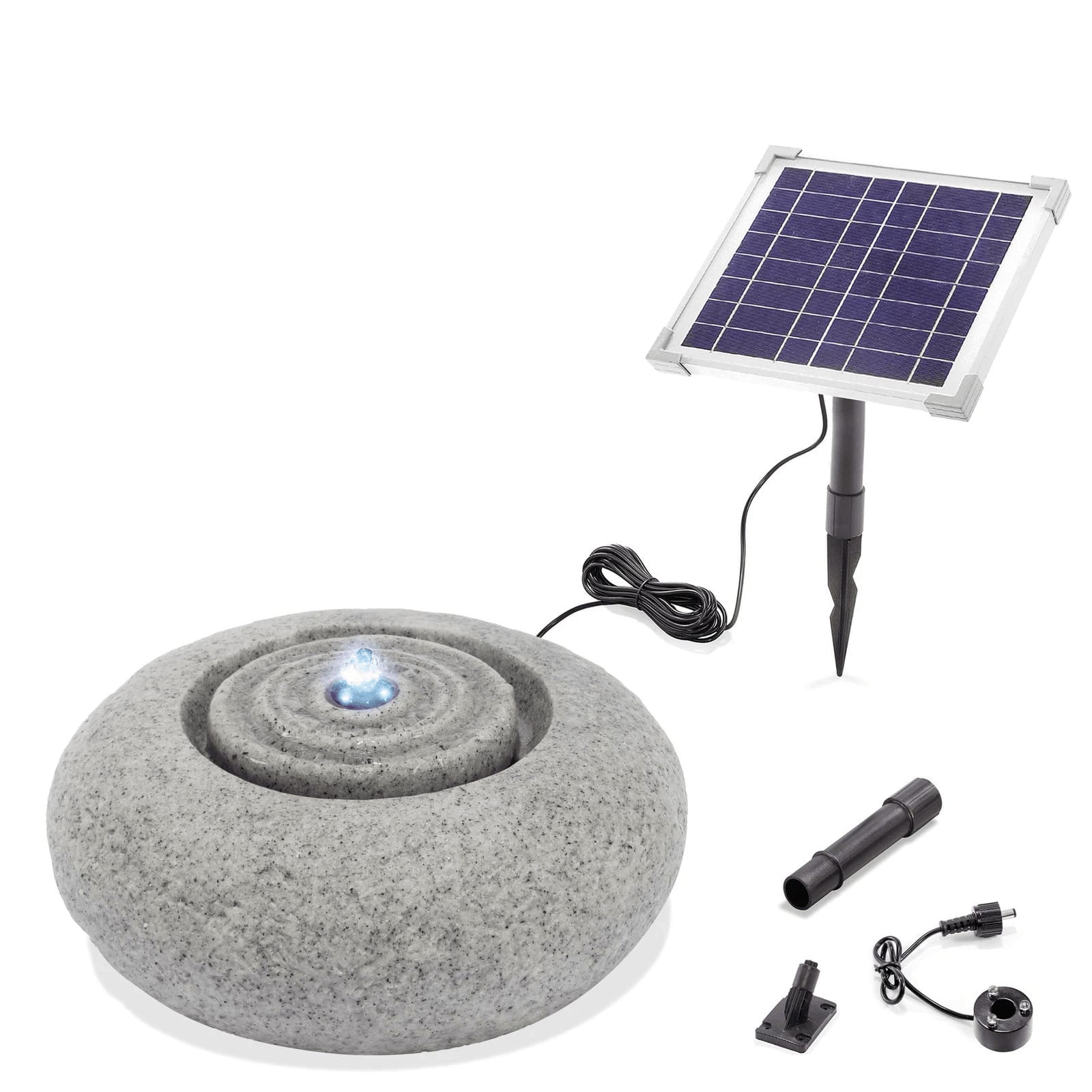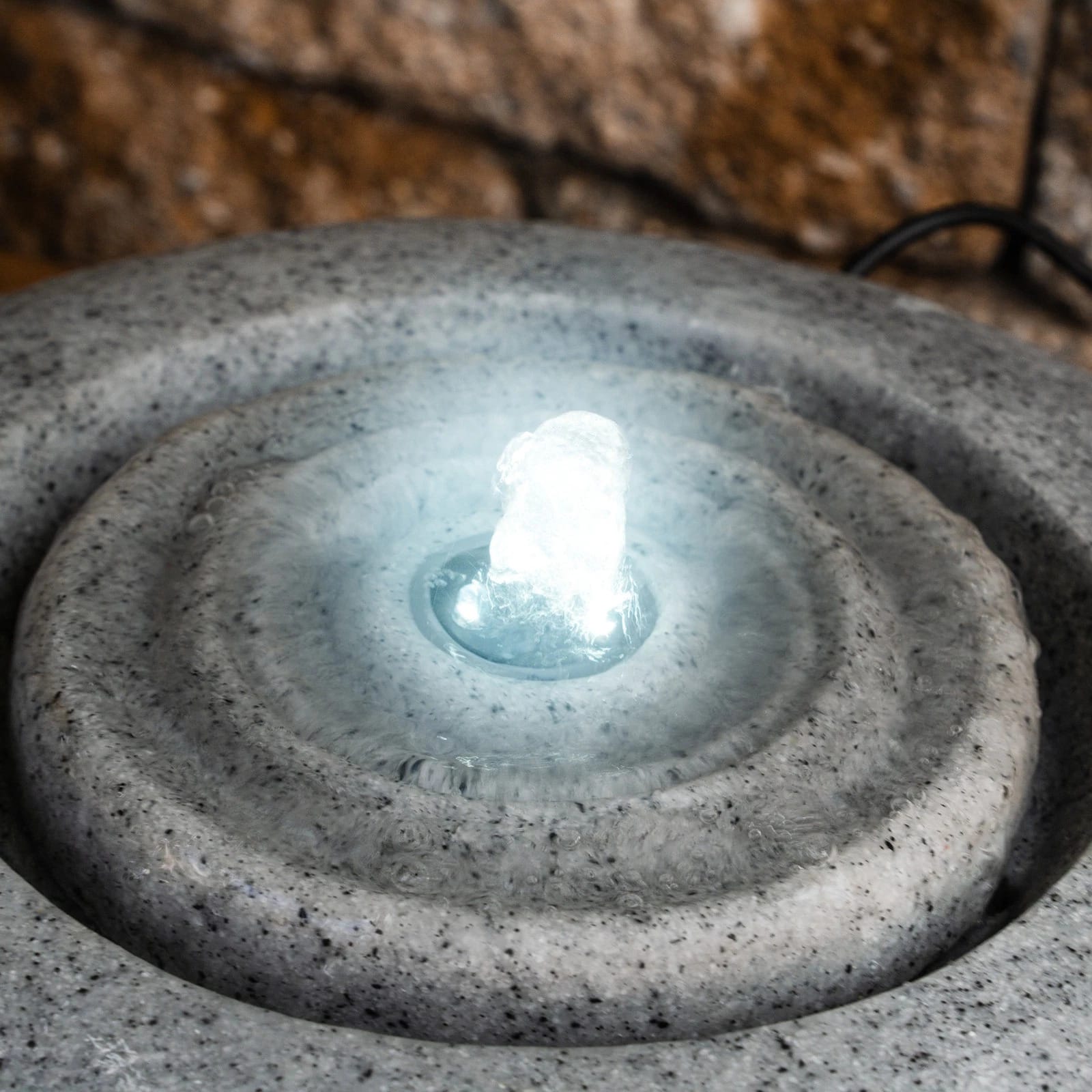 Décorez votre espace extérieur de manière éco-responsable avec la fontaine solaire ronde de jardin « Lumivo ».
